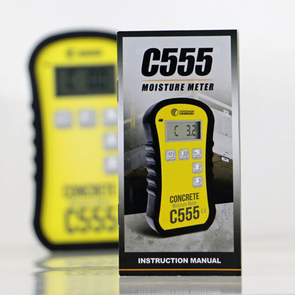 La almohadilla sensorial del C555, que emite la señal electromagnética, mide 2.0 pulgadas (50mm) de ancho por 2.5 pulgadas (63mm) de largo. Toda esta superficie debe contactar completamente con el material que está escaneando. Los bultos, crestas y otras áreas elevadas interrumpirán el completo contacto de la almohadilla sensorial y harán que el C555 proporcione datos inexactos o potencialmente engañosos. Puede resultarle útil utilizar papel de lija de grano áspero u otro sistema de lijado abrasivo para crear áreas lisas de concreto para escanear con el C555 a fin de obtener las lecturas más precisas. En el modo de Medida Estándar el C555 mide la humedad con un rango de lectura de humedad de entre 1% y 6.9%. El C555 también cuenta con el modo Medida Relativa que le dará una indicación comparativa de humedad en otros materiales, además del concreto, con una escala numérica del 1 al 100. Sin embargo, todas las superficies medidas deben suavizarse para garantizar lecturas más precisas.