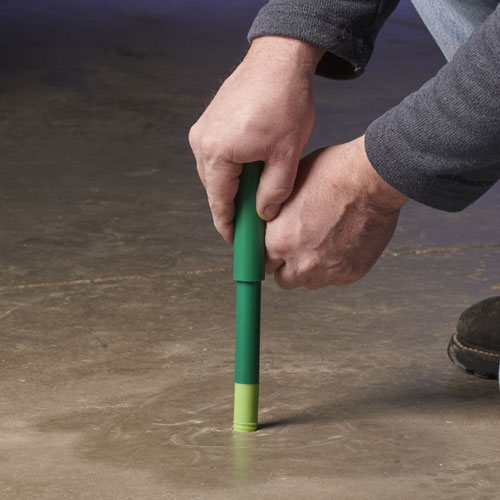 The test uses sensors — inserted into the concrete at specific depths — to measure the relative humidity of the air trapped in the concrete. For slabs drying on one side only, the sensors are inserted to a depth of 40% of the slab’s thickness. For slabs drying on both sides, the sensors are inserted to a depth that’s 20% of the slab’s thickness.