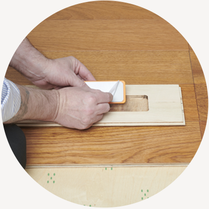 INSTALL by using a router to carve out a small section under a flooring plank and place the Floor Sentry into the routed area.