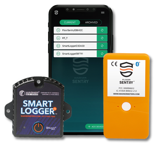 The Smart Logger™ V2, an ambient RH and temperature data logger, also works seamlessly with the Wagner Sentry app. Pairing your Smart Logger V2 and Floor Sentry to the Wagner Sentry app allows you to view both the ambient and in-floor conditions simultaneously. Streamline your monitoring process and gain complete visibility across multiple locations.
