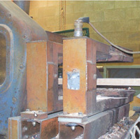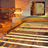 Wagner End-to-End Sensor“With this system, we measure our boards from end-to-end at the outfeed of our wood planer and mark wets with a disappearing ink.” He continues, “We did develop a minor maintenance issue. You see, for years at the outfeed of our wood planer, after taking moisture measurements with the 667, the wood went through a spray box, was treated with a pentachlorophenol-water diluted application which also had a moisture inhibitor and mold retardant. Over time the sensor was getting wet as a result of the carryback from the sprayer and it began to penetrate the coils so we just dried out the sensor a bit and we were back in business. Years later, we had the same issue when spraying the lumber with a cherry-toned product which was an industry practice at the time, and again had to deal with the same spray back situation.”