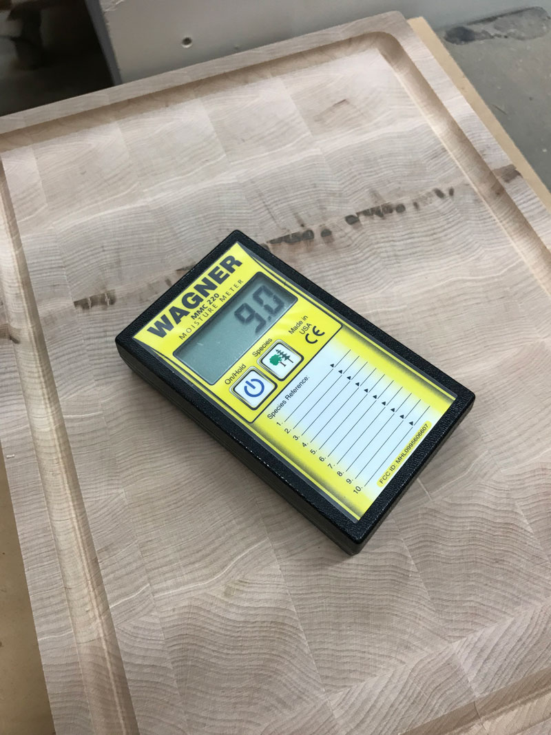 “If you don’t use a moisture meter, it’s going to affect your end product and the quality of it and the function of it, especially if you’re doing cabinet doors. Not having the right moisture means the wood will either shrink or swell and start rubbing or it will crack or warp.